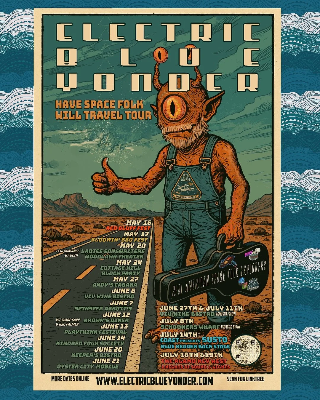 From soaring harmonies to spacey soundscapes, Electric Blue Yonder’s music blends the best of folk traditions with an adventurous spirit, drawing inspiration from life on the road, the mysteries of the universe, and the deep roots of American songwriting.